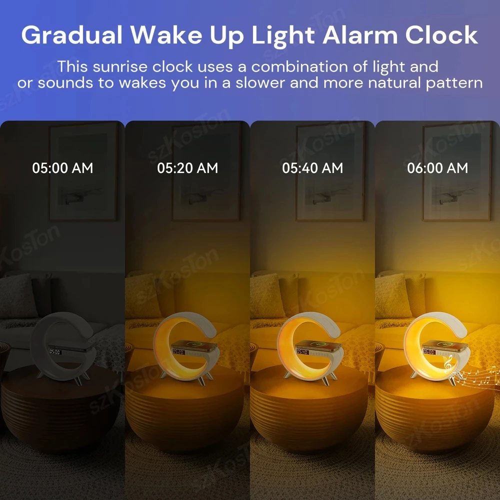 1. Lumière d'ambiance de charge sans fil multifonctionnelle: Ce n'est pas seulement une lumière d'ambiance, mais aussi une charge sans fil rapide de 15W, un haut-parleur Bluetooth, un rythme musical, une lumière de sommeil, une lumière de réveil au lever du soleil, une lumière d'ambiance, une lumière de chevet, un effet d'éblouissement, audio Bluetooth, horloge, réveil, etc. Vous pouvez utiliser cette grande lumière tout en travaillant, en étudiant, en lisant et en dormant. Très pratique.